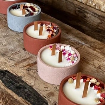 Durant ces ateliers créatifs, je t'apprendrai à réaliser des bougies naturelles avec différentes huiles essentielles bio ou bien avec des parfums de Grasse, décorées de fleurs séchées, des pierres semi-précieuses, associées avec le béton, etc.
